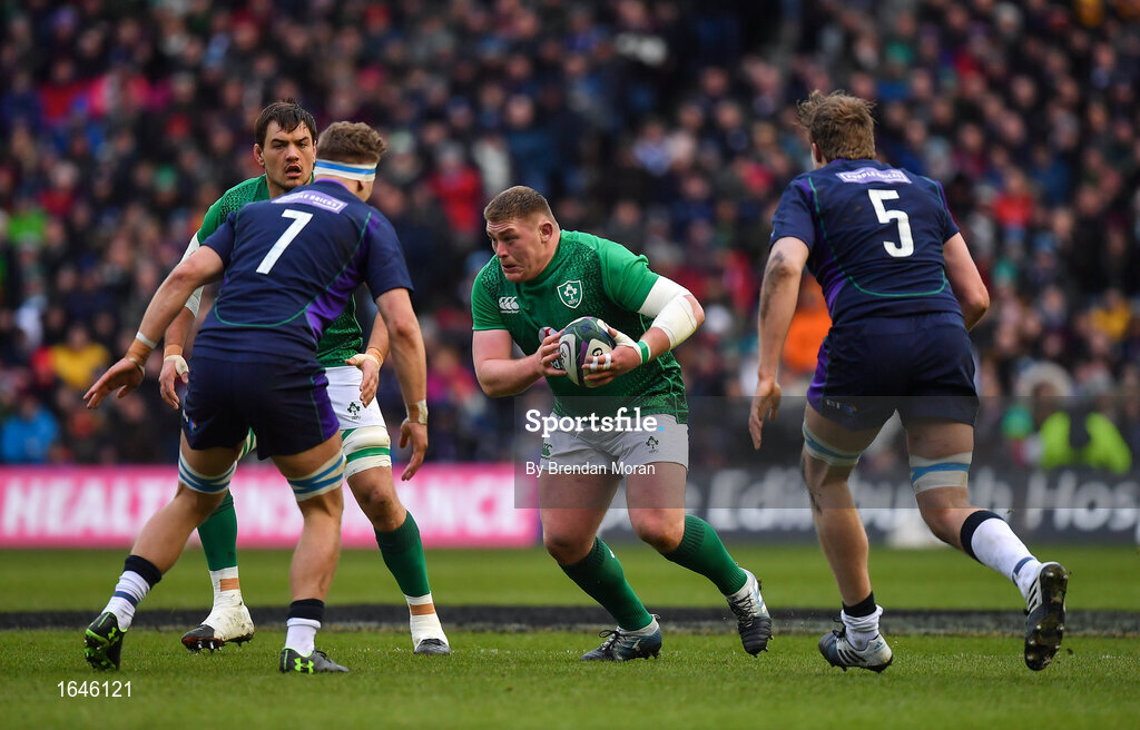 9 February 2019; Tadhg Furlong of Ireland in action against Jamie Ritchie, and Jonny Gray of Scotland during the Guinness Six Nations Rugby Championship match between Scotland and Ireland at the BT Murrayfield Stadium in Edinburgh, Scotland. Photo by Brendan Moran/Sportsfile