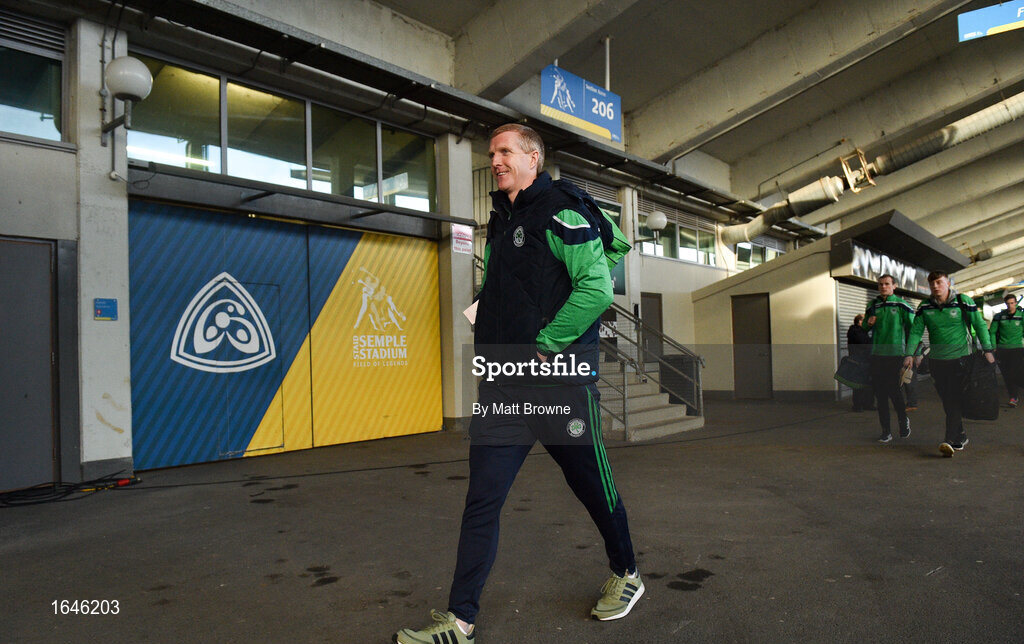 9 February 2019; Ballyhale Shamrocks manager Henry Shefflin arrives with his players before the AIB GAA Hurling All-Ireland Senior Championship semi-final match between Ballyhale Shamrocks and Ballygunner at Semple Stadium in Thurles, Tipperary. Photo by Matt Browne/Sportsfile