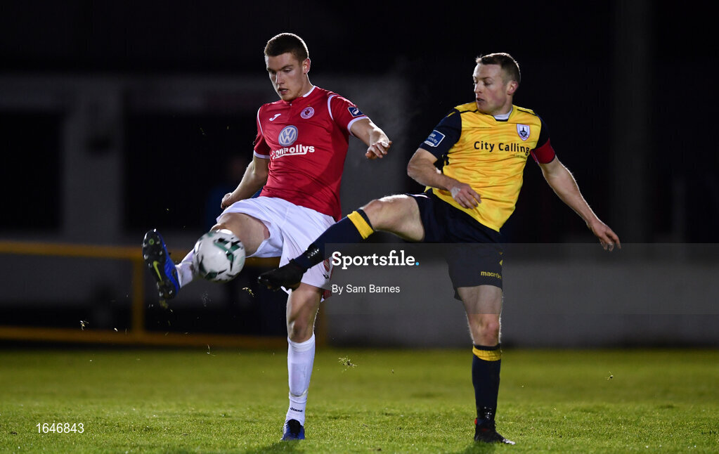 9 February 2019; Jack Keaney of Sligo Rovers in action against Dean Zambra of Longford Town during the Pre-Season Friendly match between Longford Town and Sligo Rovers at City Calling Stadium in Longford. Photo by Sam Barnes/Sportsfile
