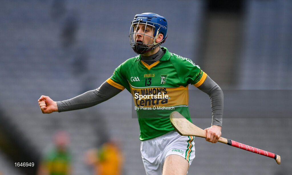 10 February 2019; Fergal Rafter of Castleblayney celebrates scoring his side's first point during the AIB GAA Hurling All-Ireland Junior Championship Final match between Castleblayney and Dunnamaggin at Croke Park in Dublin. Photo by Piaras Ó Mídheach/Sportsfile