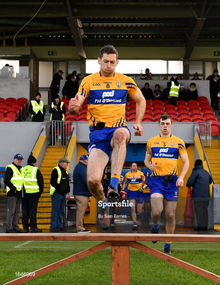 10 February 2019; Gary Brennan leads out the Clare team ahead of the Allianz Football League Division 2 Round 3 match between Clare and Cork at Cusack Park in Ennis, Clare. Photo by Sam Barnes/Sportsfile