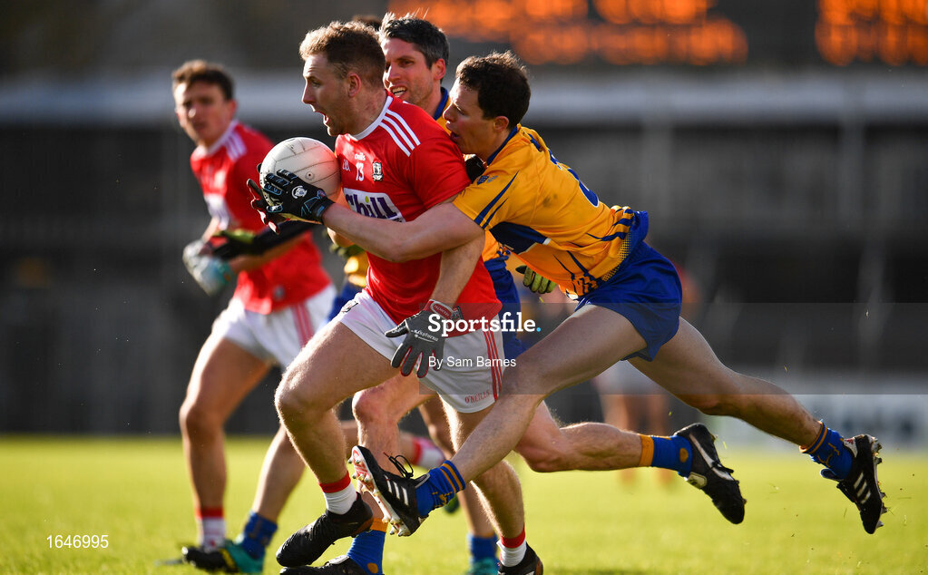 10 February 2019; Michael Hurley of Cork in action against Kevin Hartnett of Clare during the Allianz Football League Division 2 Round 3 match between Clare and Cork at Cusack Park in Ennis, Clare. Photo by Sam Barnes/Sportsfile