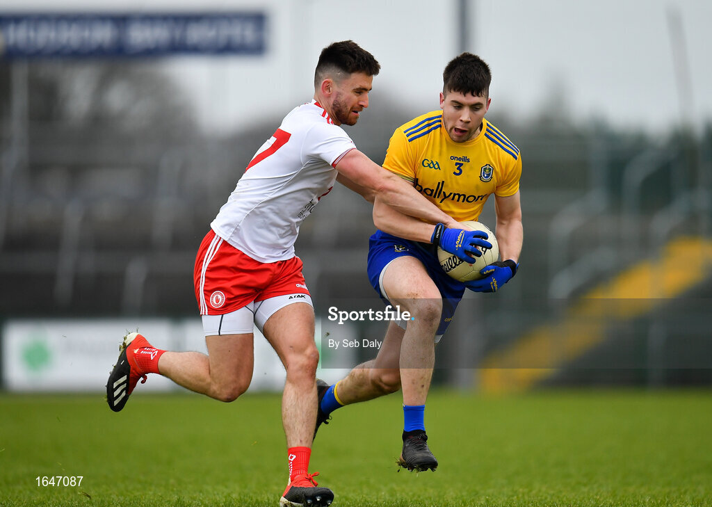 10 February 2019; Conor Daly of Roscommon in action against Padraig Hampsey of Tyrone during the Allianz Football League Division 1 Round 3 match between Roscommon and Tyrone at Dr. Hyde Park in Roscommon. Photo by Seb Daly/Sportsfile