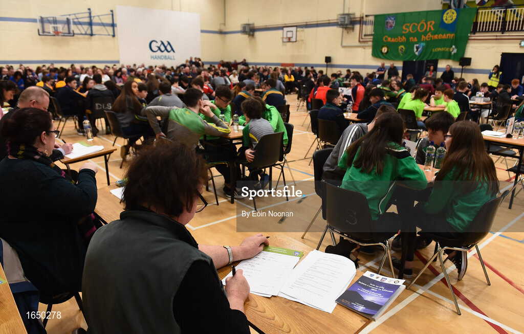 16 February 2019; A judge marking a answer sheet during the Tráth na gCéisteann Boird during the Cream of The Crop at Scór na nÓg All Ireland Finals at St Gerards De La Salle Secondary School in Castlebar, Co Mayo. Photo by Eóin Noonan/Sportsfile