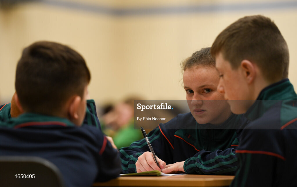 16 February 2019; Marie Cranny from Na Cnoic Arda, Ceatharlach, taking part in the Tráth na gCéisteann Boird during the Cream of The Crop at Scór na nÓg All Ireland Finals at St Gerards De La Salle Secondary School in Castlebar, Co Mayo. Photo by Eóin Noonan/Sportsfile