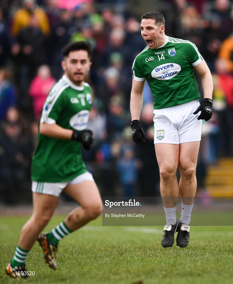 16 February 2019; Caoimhín Ó Casaide of Gaoth Dobhair celebrates scoring his side's first goal during the AIB GAA Football All-Ireland Senior Championship Semi-Final match between Corofin, Galway, and Gaoth Dobhair, Donegal, at Avantcard Páirc Sean Mac Diarmada in Carrick-on-Shannon, Leitrim. Photo by Stephen McCarthy/Sportsfile