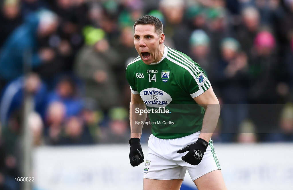 16 February 2019; Caoimhín Ó Casaide of Gaoth Dobhair celebrates scoring his side's first goal during the AIB GAA Football All-Ireland Senior Championship Semi-Final match between Corofin, Galway, and Gaoth Dobhair, Donegal, at Avantcard Páirc Sean Mac Diarmada in Carrick-on-Shannon, Leitrim. Photo by Stephen McCarthy/Sportsfile