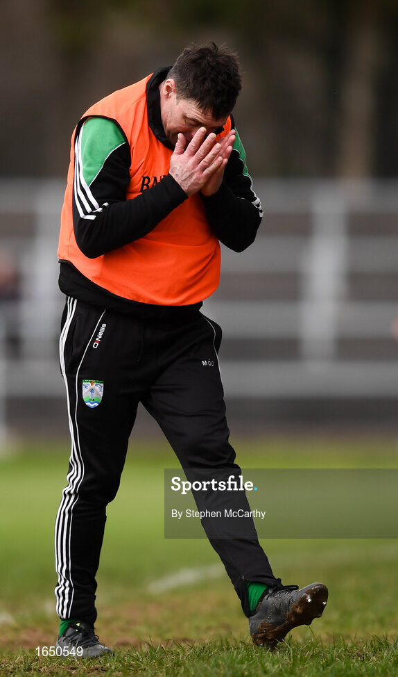 16 February 2019; Gaoth Dobhair manager Mervyn Ó Domhnaill reacts during the AIB GAA Football All-Ireland Senior Championship Semi-Final match between Corofin, Galway, and Gaoth Dobhair, Donegal, at Avantcard Páirc Sean Mac Diarmada in Carrick-on-Shannon, Leitrim. Photo by Stephen McCarthy/Sportsfile
