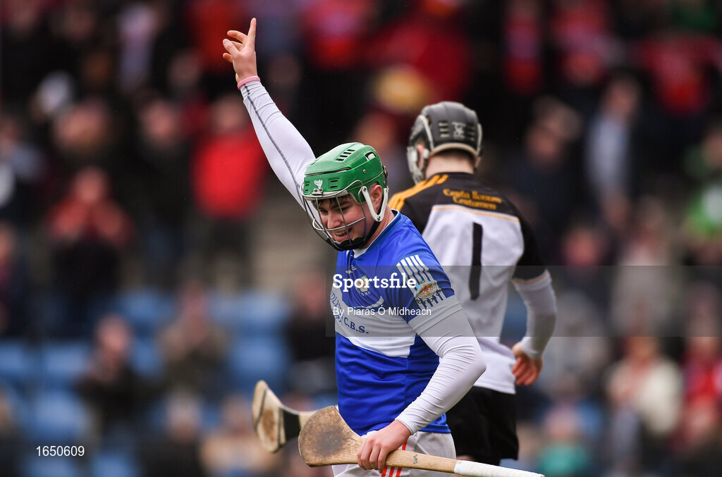 16 February 2019; Joe Stack of Midleton CBS celebrates scoring his side's second goal during the Harty Cup Final match between CBC Cork and Midleton CBS at Páirc Uí Rinn in Cork. Photo by Piaras Ó Mídheach/Sportsfile