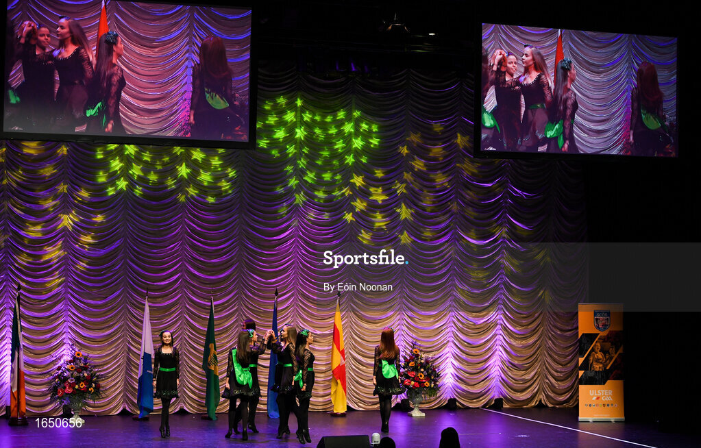 16 February 2019; Ulster team from St.Mary’s, Antrim, Eadaoin Maginn, Caoimhe Maginn, Ciara O’Connor, Angela Loughran, Aoibhinn McStravick, Emma Doherty, Erin Doone and Louise O’Connor competing in the Rince Foirne category during the Cream of The Crop at Scór na nÓg All Ireland Finals at St Gerards De La Salle Secondary School in Castlebar, Co Mayo. Photo by Eóin Noonan/Sportsfile