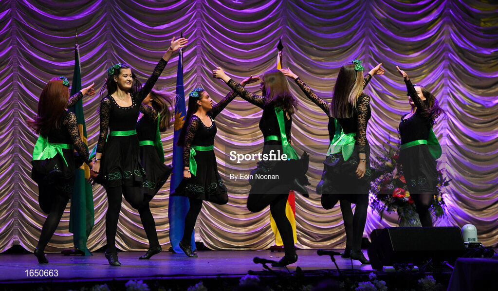 16 February 2019; Ulster team from St.Mary’s, Antrim, Eadaoin Maginn, Caoimhe Maginn, Ciara O’Connor, Angela Loughran, Aoibhinn McStravick, Emma Doherty, Erin Doone and Louise O’Connor competing in the Rince Foirne category during the Cream of The Crop at Scór na nÓg All Ireland Finals at St Gerards De La Salle Secondary School in Castlebar, Co Mayo. Photo by Eóin Noonan/Sportsfile