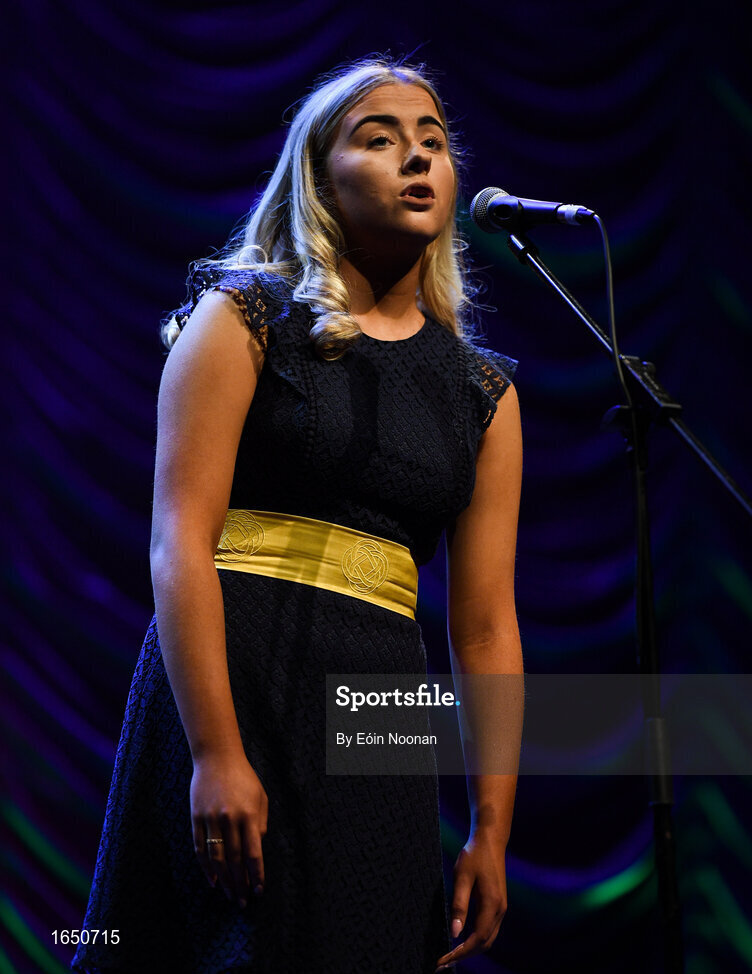 16 February 2019; Aoife Trainor from Clonduff, Down, representing Ulster in the Amhránaíocht Aonair catagory during the Cream of The Crop at Scór na nÓg All Ireland Finals at St Gerards De La Salle Secondary School in Castlebar, Co Mayo. Photo by Eóin Noonan/Sportsfile