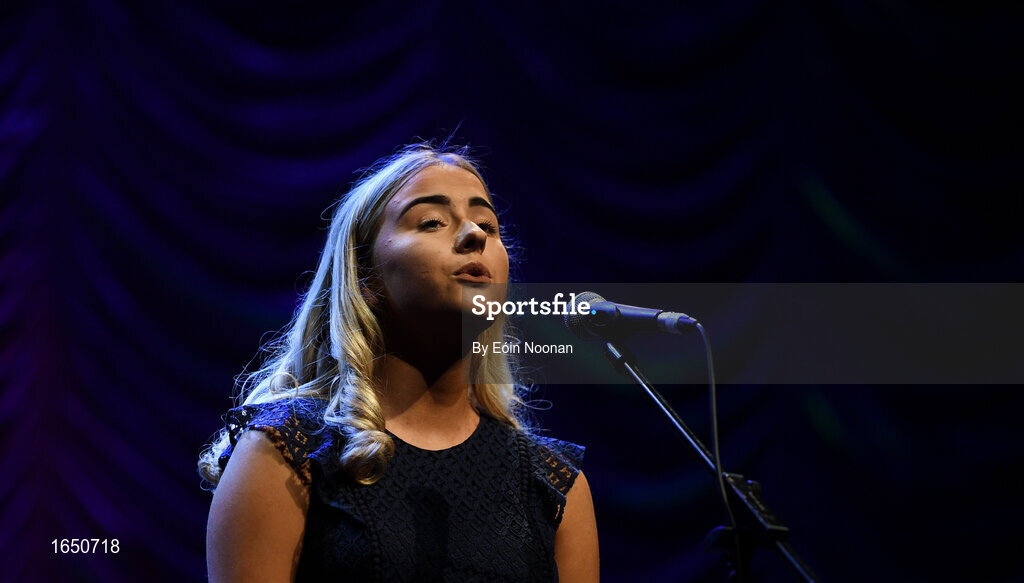 16 February 2019; Aoife Trainor from Clonduff, Down, representing Ulster in the Amhránaíocht Aonair catagory during the Cream of The Crop at Scór na nÓg All Ireland Finals at St Gerards De La Salle Secondary School in Castlebar, Co Mayo. Photo by Eóin Noonan/Sportsfile