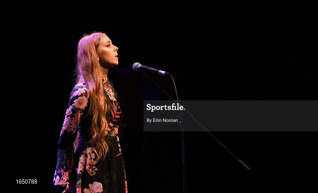 16 February 2019; Kayleigh Moran from Bannow-Ballymitty, Wexford, representing Leinster in the Amhránaíocht Aonair catagory during the Cream of The Crop at Scór na nÓg All Ireland Finals at St Gerards De La Salle Secondary School in Castlebar, Co Mayo. Photo by Eóin Noonan/Sportsfile