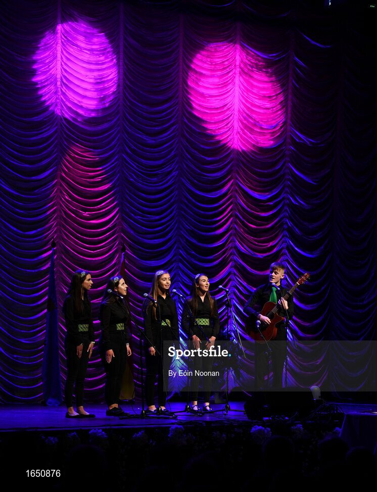 16 February 2019; Ulter team from Watty Graham’s GAC Glen, Derry, Ciarán McKenna, Cora McEldowney, Cliona Convery, Aoife Molloy and Katie McCoy competing in the Bailéad Ghrúpa catagory during the Cream of The Crop at Scór na nÓg All Ireland Finals at St Gerards De La Salle Secondary School in Castlebar, Co Mayo. Photo by Eóin Noonan/Sportsfile