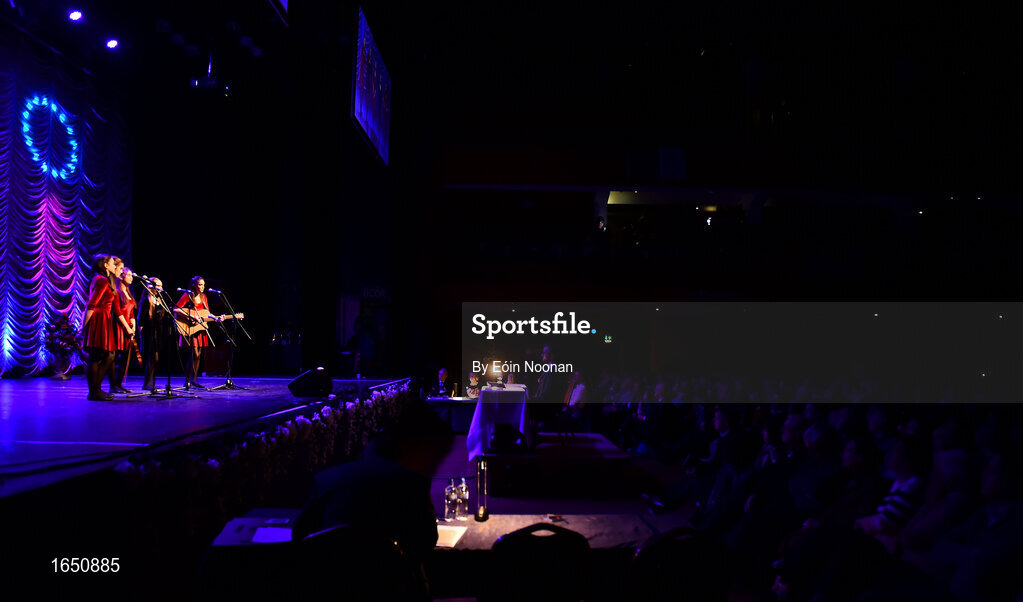 16 February 2019; Leinster team from St. Patrick's, Ardagh, Longford, Aishling Farrell, Siobhán Kilduff, Katie Lynch, Emma Thompson and Leia Nic hAnabaí competing in the Bailéad Ghrúpa catagory during the Cream of The Crop at Scór na nÓg All Ireland Finals at St Gerards De La Salle Secondary School in Castlebar, Co Mayo. Photo by Eóin Noonan/Sportsfile