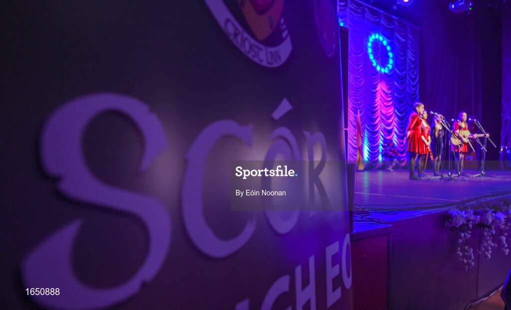 16 February 2019; Leinster team from St. Patrick's, Ardagh, Longford, Aishling Farrell, Siobhán Kilduff, Katie Lynch, Emma Thompson and Leia Nic hAnabaí competing in the Bailéad Ghrúpa catagory during the Cream of The Crop at Scór na nÓg All Ireland Finals at St Gerards De La Salle Secondary School in Castlebar, Co Mayo. Photo by Eóin Noonan/Sportsfile
