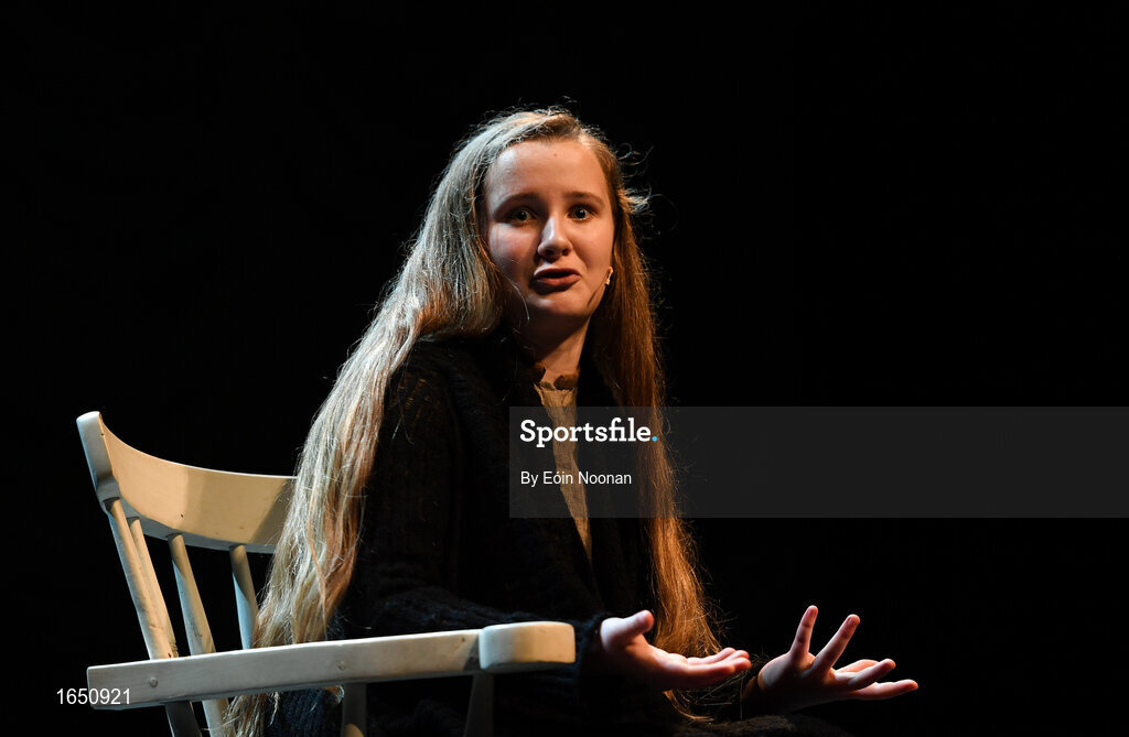 16 February 2019; Mary Kate Bonnes from Tír na nÓg, Randalstown, Antrim, representing Ulster in the Aithriseoireacht catagory during the Cream of The Crop at Scór na nÓg All Ireland Finals at St Gerards De La Salle Secondary School in Castlebar, Co Mayo. Photo by Eóin Noonan/Sportsfile