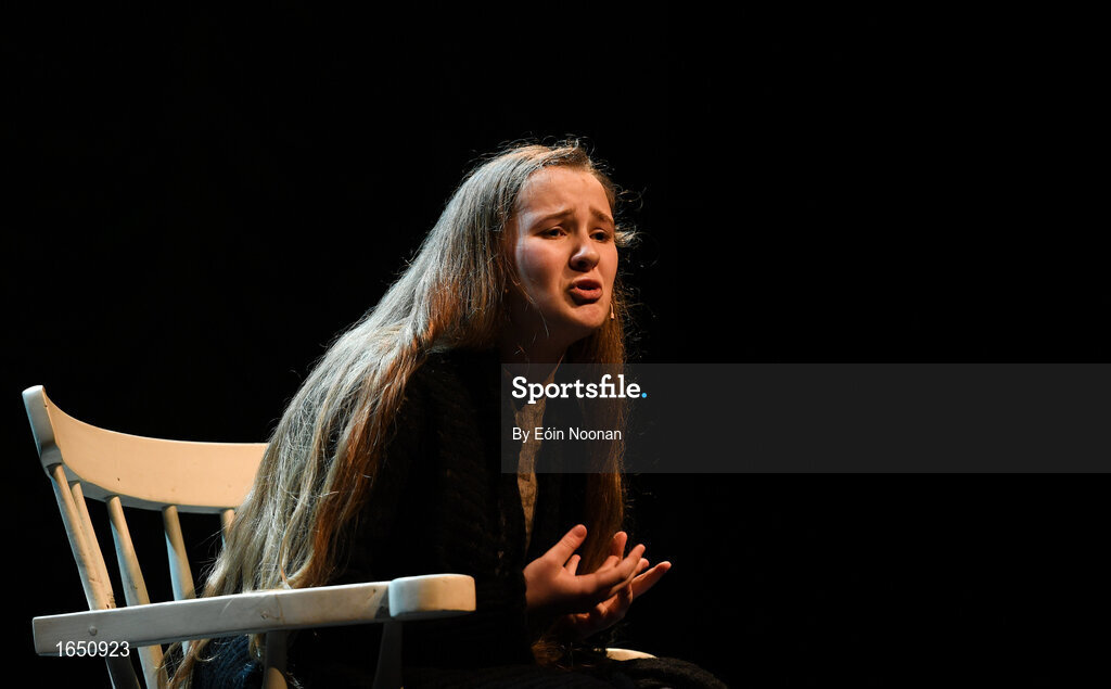 16 February 2019; Mary Kate Bonnes from Tír na nÓg, Randalstown, Antrim, representing Ulster in the Aithriseoireacht catagory during the Cream of The Crop at Scór na nÓg All Ireland Finals at St Gerards De La Salle Secondary School in Castlebar, Co Mayo. Photo by Eóin Noonan/Sportsfile