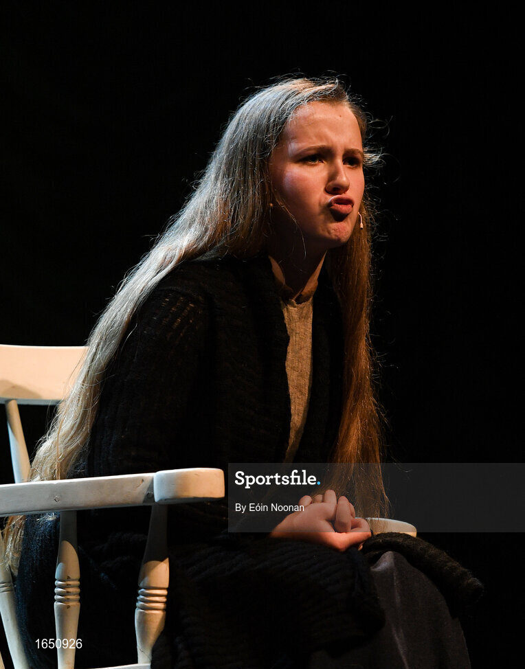 16 February 2019; Mary Kate Bonnes from Tír na nÓg, Randalstown, Antrim, representing Ulster in the Aithriseoireacht catagory during the Cream of The Crop at Scór na nÓg All Ireland Finals at St Gerards De La Salle Secondary School in Castlebar, Co Mayo. Photo by Eóin Noonan/Sportsfile