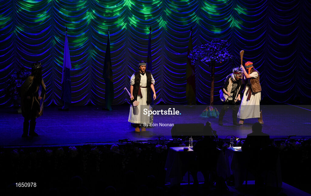 16 February 2019; Connacht team from St.Dominic’s, Roscommon, Ina Van Opstal, Michelle Rogers, Molly Anne Feeley, Karol Feerick, Hannah Finan, Michaela Lohan, Colm Lyons and Conor Murphy competing in the Léiriú catagory during the Cream of The Crop at Scór na nÓg All Ireland Finals at St Gerards De La Salle Secondary School in Castlebar, Co Mayo. Photo by Eóin Noonan/Sportsfile