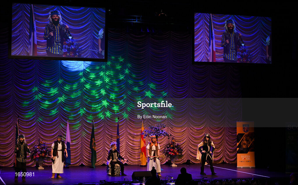 16 February 2019; Connacht team from St.Dominic’s, Roscommon, Ina Van Opstal, Michelle Rogers, Molly Anne Feeley, Karol Feerick, Hannah Finan, Michaela Lohan, Colm Lyons and Conor Murphy competing in the Léiriú catagory during the Cream of The Crop at Scór na nÓg All Ireland Finals at St Gerards De La Salle Secondary School in Castlebar, Co Mayo. Photo by Eóin Noonan/Sportsfile