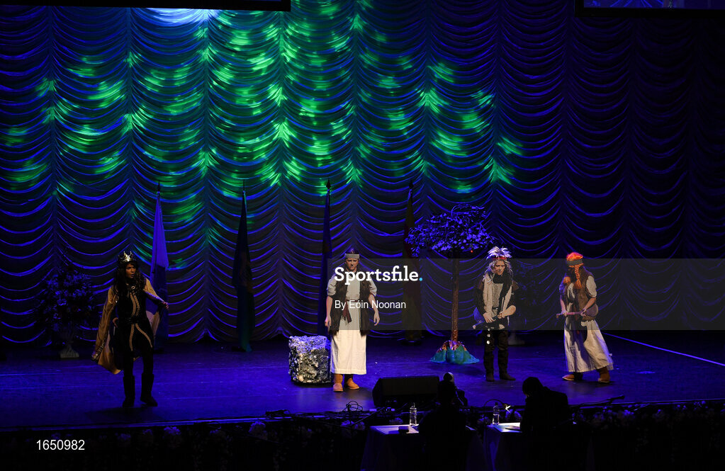 16 February 2019; Connacht team from St.Dominic’s, Roscommon, Ina Van Opstal, Michelle Rogers, Molly Anne Feeley, Karol Feerick, Hannah Finan, Michaela Lohan, Colm Lyons and Conor Murphy competing in the Léiriú catagory during the Cream of The Crop at Scór na nÓg All Ireland Finals at St Gerards De La Salle Secondary School in Castlebar, Co Mayo. Photo by Eóin Noonan/Sportsfile