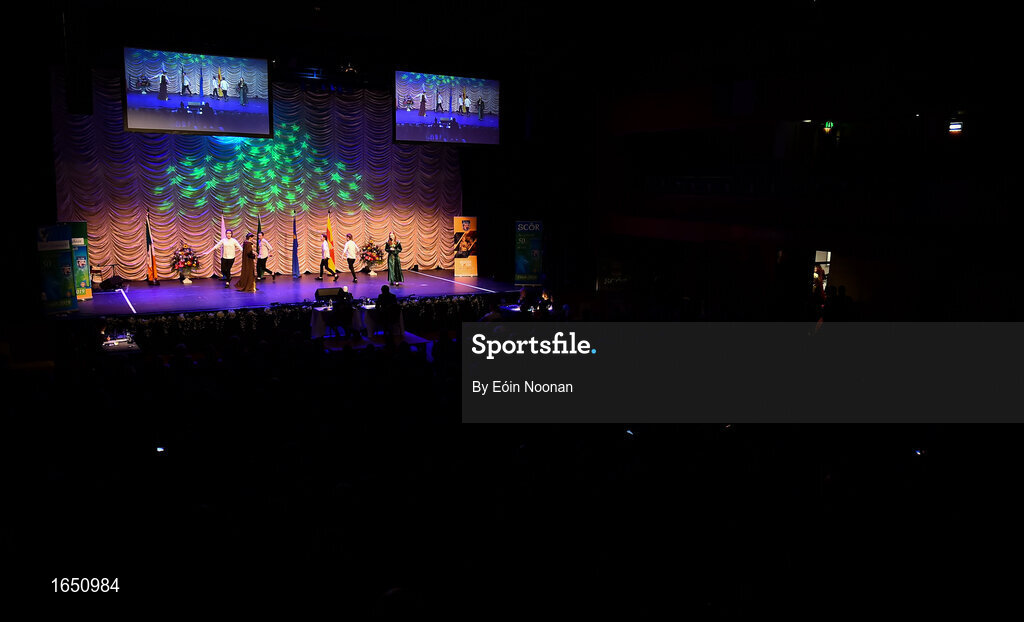 16 February 2019; Leinster team from Ardclough, Kildare, Oisin Maguire, Hannah Wiseman, Meaghan Ó Brien, Aoife Moore, Oliver Finneran, Saoirse Aherne, Martha Ryan and Tory May Finnerty competing in the Léiriú catagory during the Cream of The Crop at Scór na nÓg All Ireland Finals at St Gerards De La Salle Secondary School in Castlebar, Co Mayo. Photo by Eóin Noonan/Sportsfile