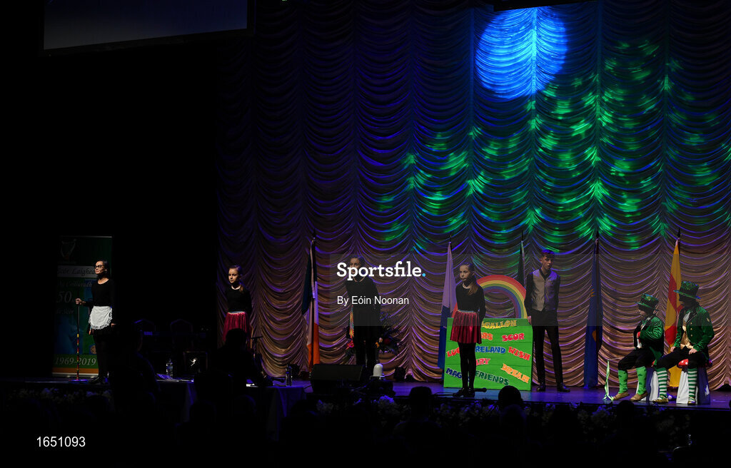 16 February 2019; Ulster team from St.Mary’s, Antrim, Daniel McCavigan, Meabh McCavigan, Zara McCavigan, Eadaoin Maginn, Una Maginn, Oisin McStravick, Paddy Joe McStravick and Ciara O’Connor competing in the Léiriú catagory during the Cream of The Crop at Scór na nÓg All Ireland Finals at St Gerards De La Salle Secondary School in Castlebar, Co Mayo. Photo by Eóin Noonan/Sportsfile