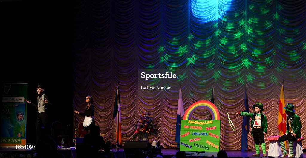 16 February 2019; Ulster team from St.Mary’s, Antrim, Daniel McCavigan, Meabh McCavigan, Zara McCavigan, Eadaoin Maginn, Una Maginn, Oisin McStravick, Paddy Joe McStravick and Ciara O’Connor competing in the Léiriú catagory during the Cream of The Crop at Scór na nÓg All Ireland Finals at St Gerards De La Salle Secondary School in Castlebar, Co Mayo. Photo by Eóin Noonan/Sportsfile