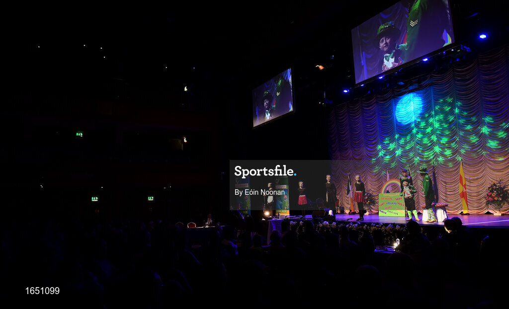 16 February 2019; Ulster team from St.Mary’s, Antrim, Daniel McCavigan, Meabh McCavigan, Zara McCavigan, Eadaoin Maginn, Una Maginn, Oisin McStravick, Paddy Joe McStravick and Ciara O’Connor competing in the Léiriú catagory during the Cream of The Crop at Scór na nÓg All Ireland Finals at St Gerards De La Salle Secondary School in Castlebar, Co Mayo. Photo by Eóin Noonan/Sportsfile