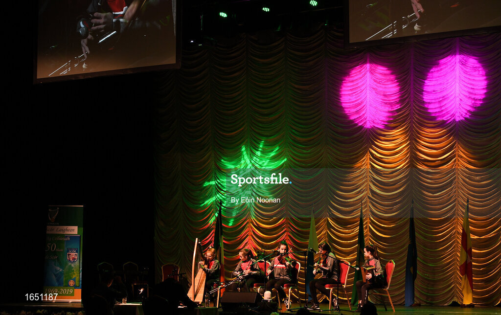 16 February 2019; Ulster team from Madden Raparees, Armagh, Cadhla Tohill, Eimear McGeary, Róise McGeary, Ríoghnach McKinney and Danu McKinney competing in the Ceol Uirlise catagory during the Cream of The Crop at Scór na nÓg All Ireland Finals at St Gerards De La Salle Secondary School in Castlebar, Co Mayo. Photo by Eóin Noonan/Sportsfile