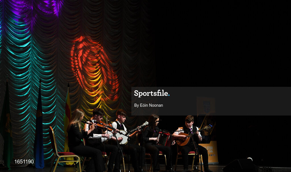 16 February 2019; Munster team from Kilshannig, Cork, Robert Dunne, Marc O Shea, Eoin Turner, Aoife Turner and Sarah Guiney competing in the Ceol Uirlise catagory during the Cream of The Crop at Scór na nÓg All Ireland Finals at St Gerards De La Salle Secondary School in Castlebar, Co Mayo. Photo by Eóin Noonan/Sportsfile