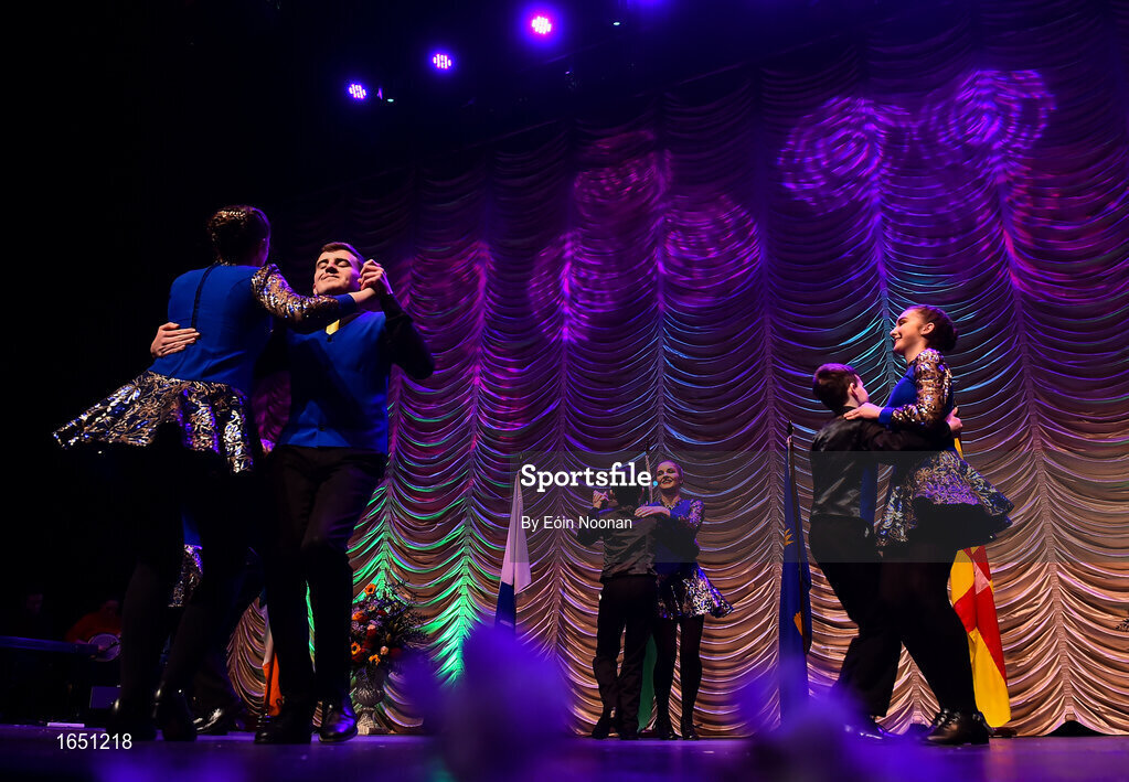 16 February 2019; Munster team from Spa, Kerry, Erin Holland, Orlaith Spillane, Eleana O Donoghue, Aoife O Donoghue, Gary O Sullivan, Colm O Connor, Dara Brosnan and Diarmuid O Donovan competing in the Rince Seit catagory during the Cream of The Crop at Scór na nÓg All Ireland Finals at St Gerards De La Salle Secondary School in Castlebar, Co Mayo. Photo by Eóin Noonan/Sportsfile