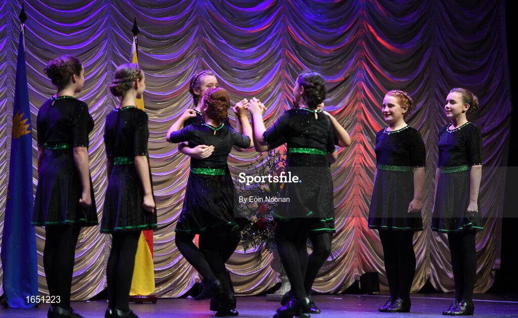 16 February 2019; Leinster team from St. Joseph's, Westmeath, Katie Kelly, Ciara Daly, Kayla McDonnell, Zara Montgomery, Caoilinn Elliffe, Sarah Conlon, Joyce Conway and Sarah McCormack competing in the Rince Seit catagory during the Cream of The Crop at Scór na nÓg All Ireland Finals at St Gerards De La Salle Secondary School in Castlebar, Co Mayo. Photo by Eóin Noonan/Sportsfile