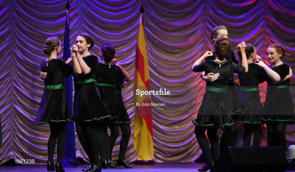 16 February 2019; Leinster team from St. Joseph's, Westmeath, Katie Kelly, Ciara Daly, Kayla McDonnell, Zara Montgomery, Caoilinn Elliffe, Sarah Conlon, Joyce Conway and Sarah McCormack competing in the Rince Seit catagory during the Cream of The Crop at Scór na nÓg All Ireland Finals at St Gerards De La Salle Secondary School in Castlebar, Co Mayo. Photo by Eóin Noonan/Sportsfile