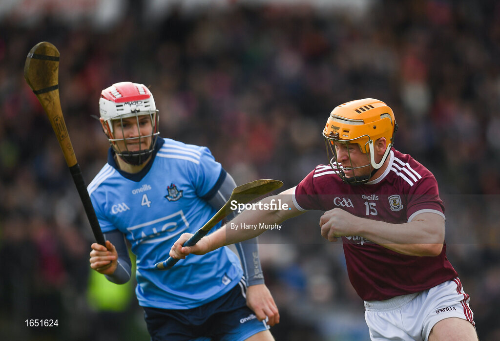 17 February 2019; Davy Glennon of Galway in action against Cian O'Callaghan of Dublin during the Allianz Hurling League Division 1B Round 3 match between Galway and Dublin at Pearse Stadium in Salthill, Galway. Photo by Harry Murphy/Sportsfile