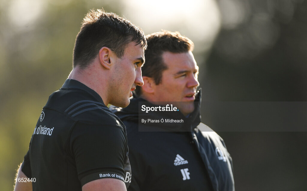 18 February 2019; Ronan Kelleher with scrum coach John Fogarty during Leinster Rugby Squad Training at Rosemount in UCD, Dublin. Photo by Piaras Ó Mídheach/Sportsfile