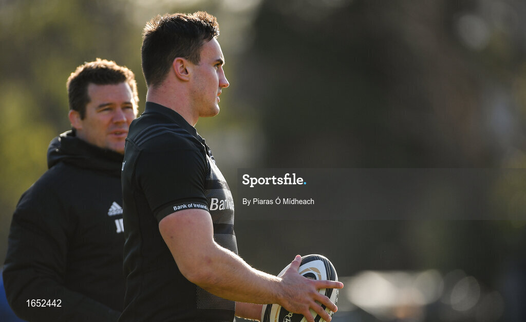 18 February 2019; Ronan Kelleher with scrum coach John Fogarty during Leinster Rugby Squad Training at Rosemount in UCD, Dublin. Photo by Piaras Ó Mídheach/Sportsfile