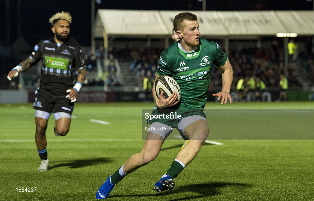 22 February 2019; Stephen Fitzgerald of Connacht on his way to scoring a try during the Guinness PRO14 Round 16 match between Glasgow Warriors and Connacht at Scotstoun Stadium in Glasgow, Scotland. Photo by Ross Parker/Sportsfile