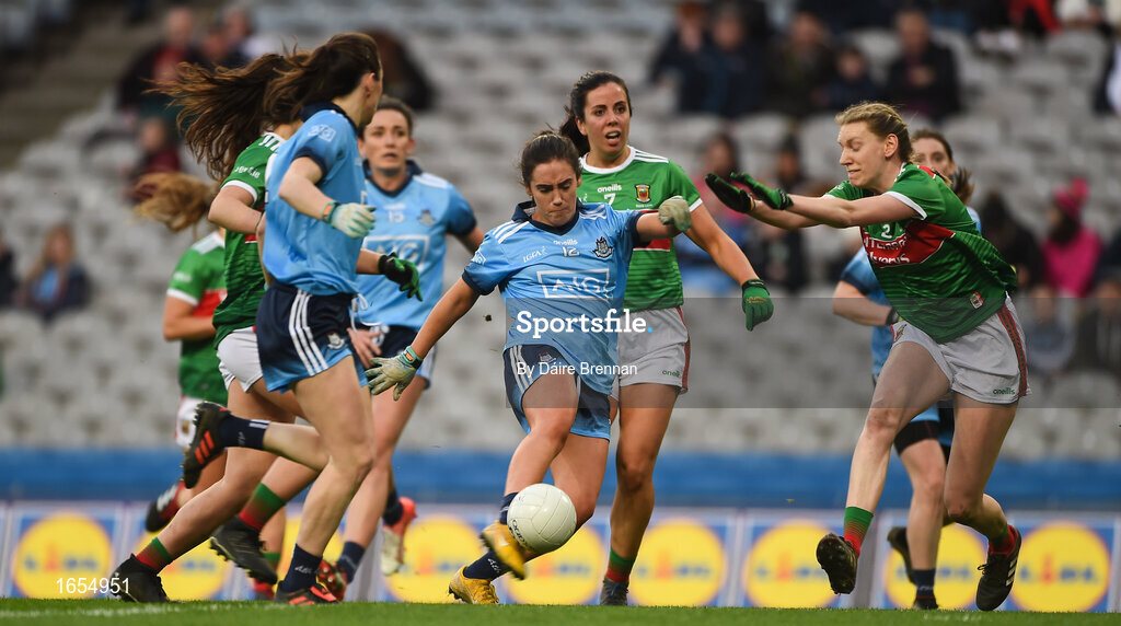 23 February 2019; Hannah O’Neill of Dublin in action against Nicola O'Malley of Mayo during the Lidl Ladies NFL Division 1 Round 3 match between Dublin and Mayo at Croke Park in Dublin. Photo by Daire Brennan/Sportsfile