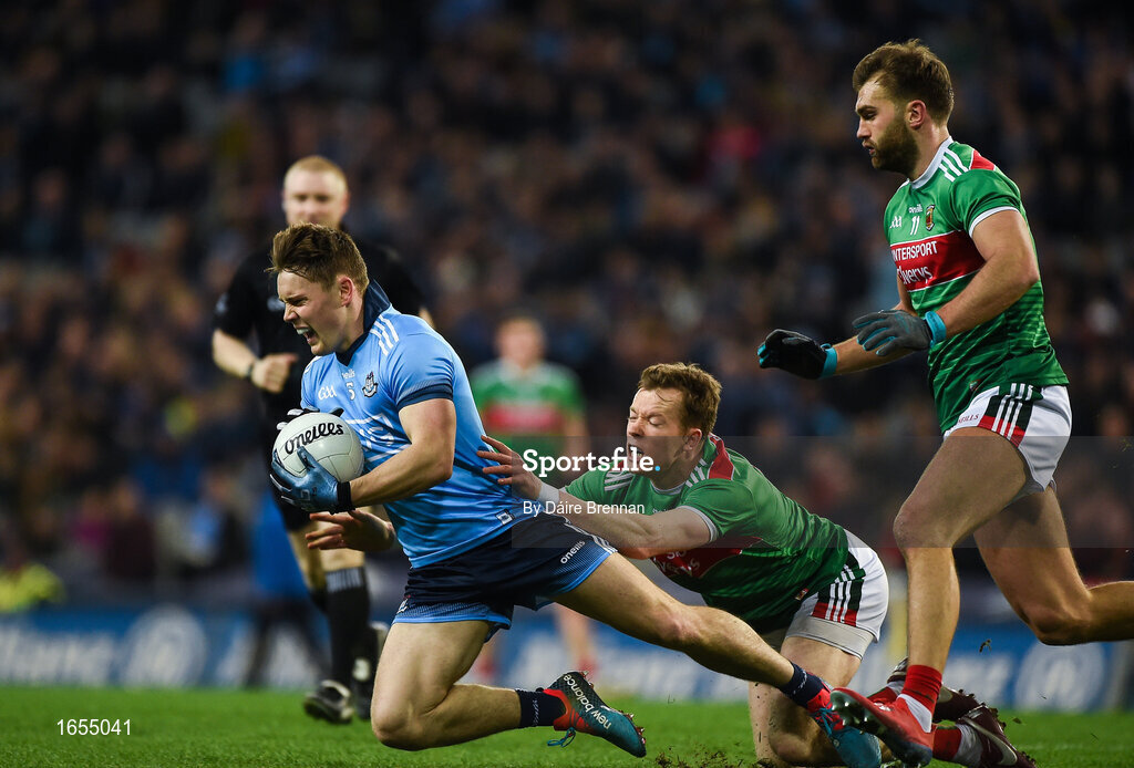 23 February 2019; Con O’Callaghan of Dublin in action against Donal Vaughan of Mayo during the Allianz Football League Division 1 Round 4 match between Dublin and Mayo at Croke Park in Dublin. Photo by Daire Brennan/Sportsfile