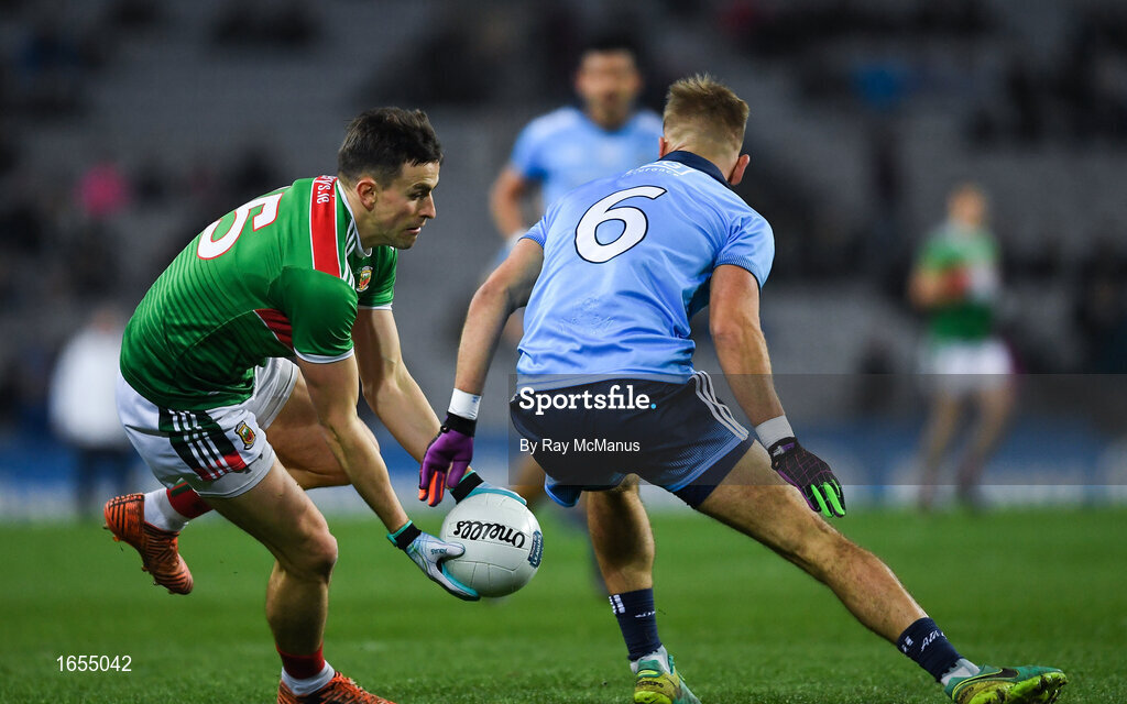 23 February 2019; Jason Doherty of Mayo in action against Jonny Cooper of Dublin during the Allianz Football League Division 1 Round 4 match between Dublin and Mayo at Croke Park in Dublin. Photo by Ray McManus/Sportsfile