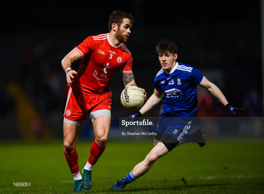 23 February 2019; Ronan McNamee of Tyrone in action against Stephen O’Hanlon of Monaghan during the Allianz Football League Division 1 Round 4 match between Tyrone and Monaghan at Healy Park in Omagh, Co Tyrone. Photo by Stephen McCarthy/Sportsfile