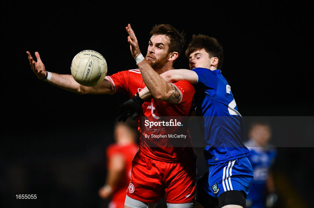 23 February 2019; Ronan McNamee of Tyrone in action against Stephen O’Hanlon of Monaghan during the Allianz Football League Division 1 Round 4 match between Tyrone and Monaghan at Healy Park in Omagh, Co Tyrone. Photo by Stephen McCarthy/Sportsfile