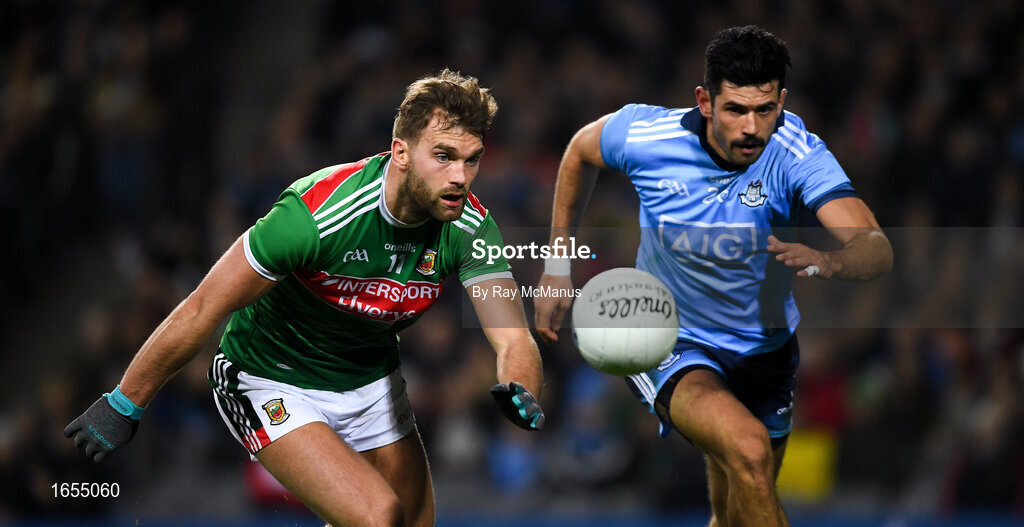 23 February 2019; Aidan O’Shea of Mayo in action against Cian O’Sullivan of Dublin during the Allianz Football League Division 1 Round 4 match between Dublin and Mayo at Croke Park in Dublin. Photo by Ray McManus/Sportsfile
