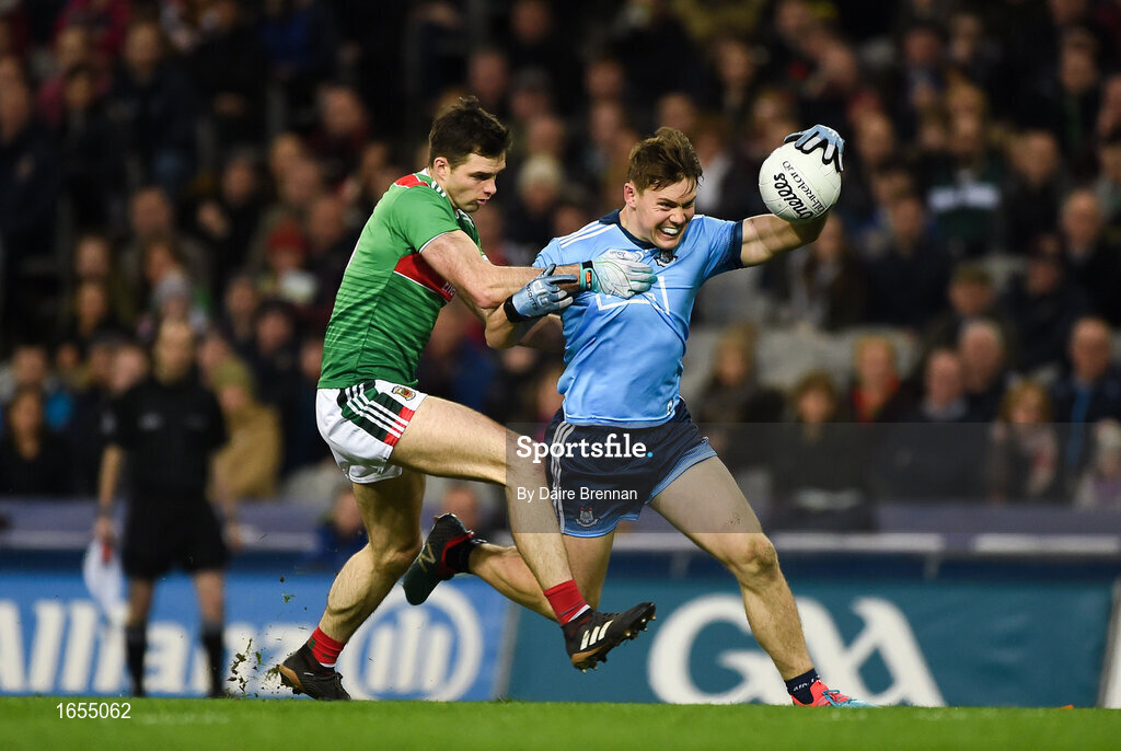 23 February 2019; Con O’Callaghan of Dublin in action against Ger Cafferkey of Mayo during the Allianz Football League Division 1 Round 4 match between Dublin and Mayo at Croke Park in Dublin. Photo by Daire Brennan/Sportsfile
