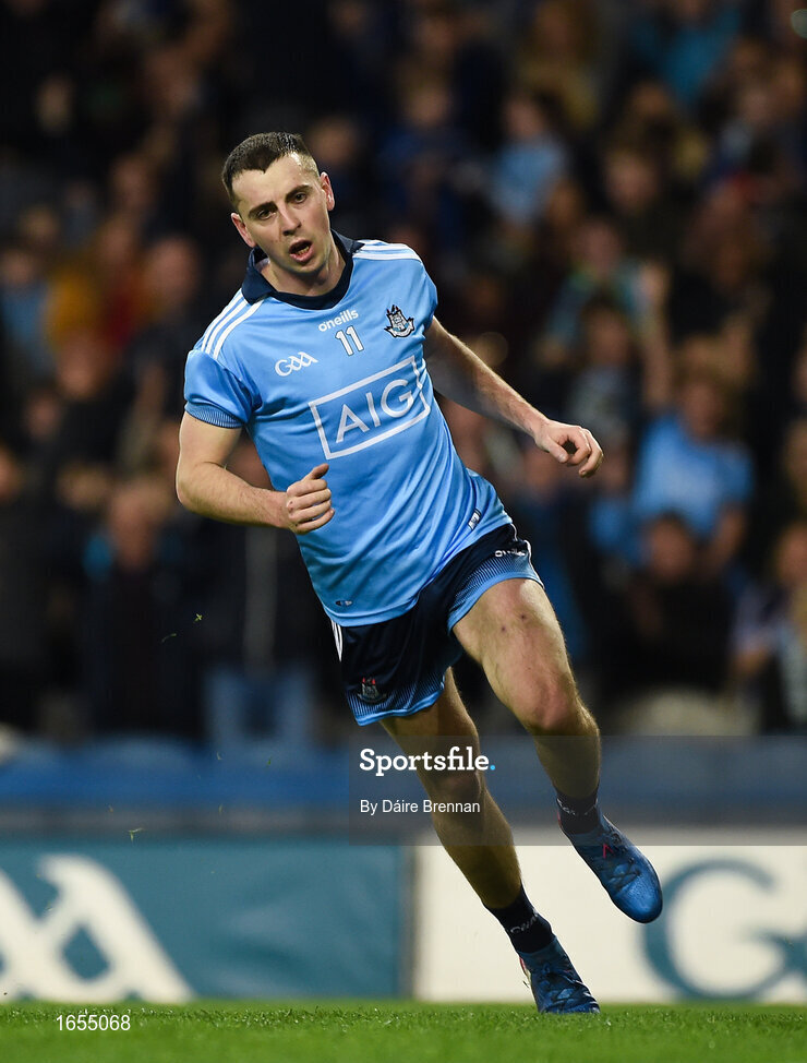 23 February 2019; Cormac Costello of Dublin celebrates after scoring his side's first goal during the Allianz Football League Division 1 Round 4 match between Dublin and Mayo at Croke Park in Dublin. Photo by Daire Brennan/Sportsfile