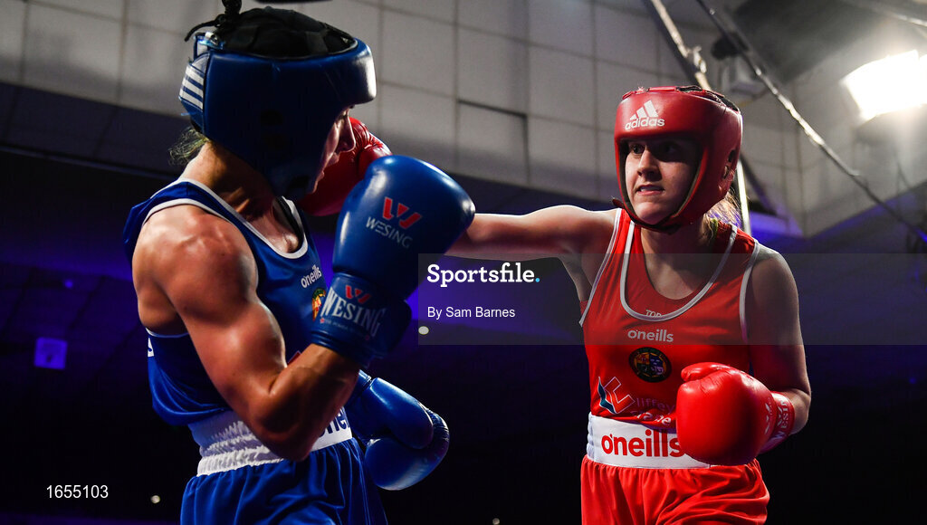 23 February 2019; Michaela Walsh, right, in action against Dearbhla Duffy during their 57kg bout at the 2019 National Elite Men’s & Women’s Boxing Championships Finals at the National Stadium in Dublin. Photo by Sam Barnes/Sportsfile