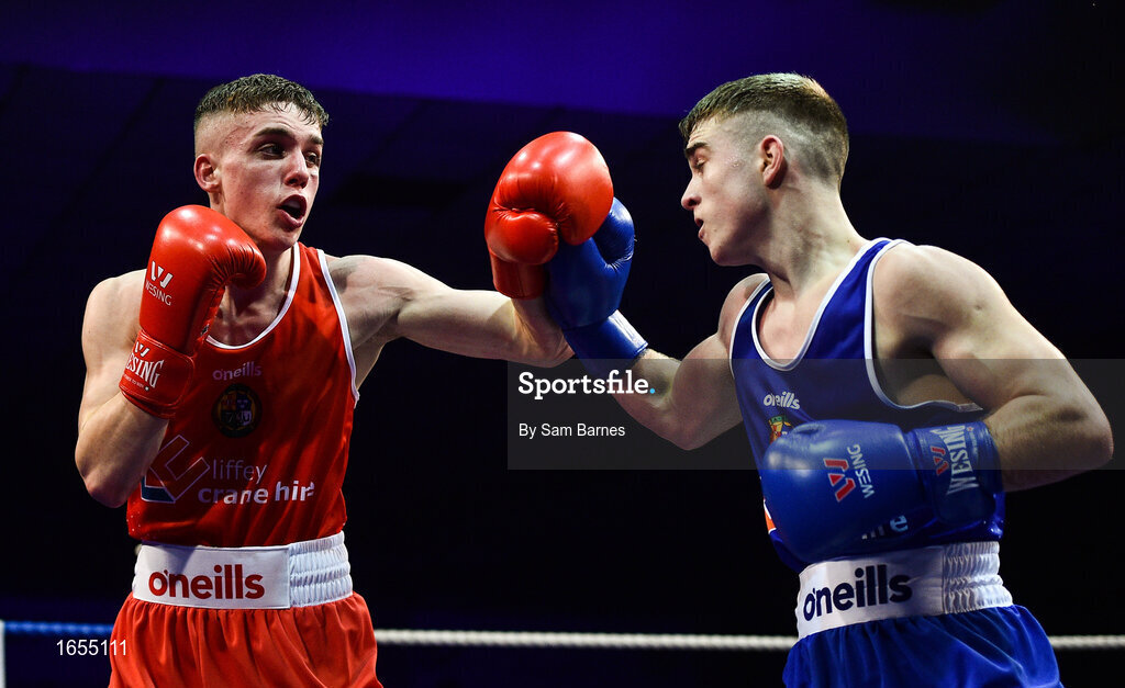 23 February 2019; Dominic Bradley, left, in action against David Oliver Joyce during their 60kg bout at the 2019 National Elite Men’s & Women’s Boxing Championships Finals at the National Stadium in Dublin. Photo by Sam Barnes/Sportsfile